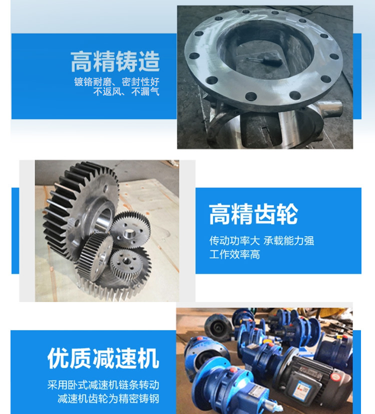 雙極串聯(lián)型旋轉(zhuǎn)供料器:鎖氣能力更好,多適用于煤粉、脫硝粉等輸送。不僅如此聚恒串聯(lián)型旋轉(zhuǎn)供料器還可以根據(jù)現(xiàn)場實際需求,單獨設(shè)計從而完成安裝需求,系統(tǒng)成體運行平穩(wěn),不卡料或漏料,滿足工工況要求,輸送能力滿足需求的同時還安全可靠